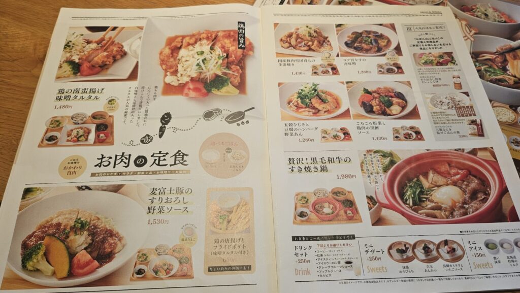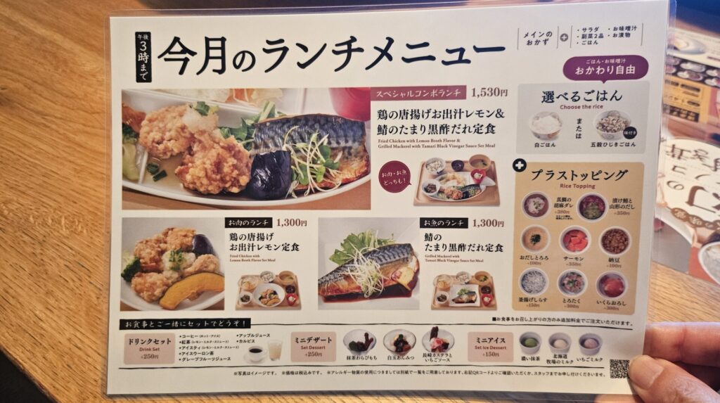 おぼんdeごはん KITTE博多店の定食は、おおむね1,300円から1,500円前後が中心価格です。メイン料理に加え、小鉢や味噌汁、ごはんまでしっかり揃っているので、外食としてはコスパが良いと感じる人が多いようです。ごはんは白米・五穀米から選べて、おかわりも無料。食べ盛りの子どもがいる家庭にはありがたいポイントです。
