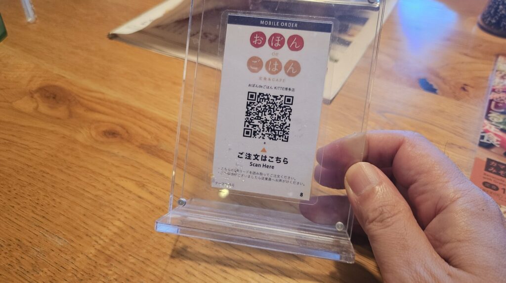 注文は、スマホでQRコードを読み込んで専用サイトで行います。