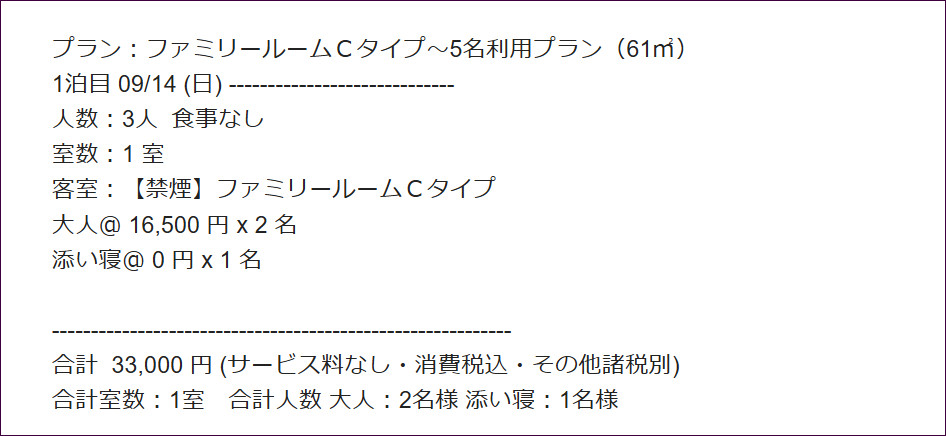 祝日前の宿泊で、洗濯機も部屋に設置されていて、ミニキッチンもある61㎡の広々としたお部屋で、33,000円。どこもホテル代が高騰しているこのご時世、かなりコスパが良いのではないでしょうか。