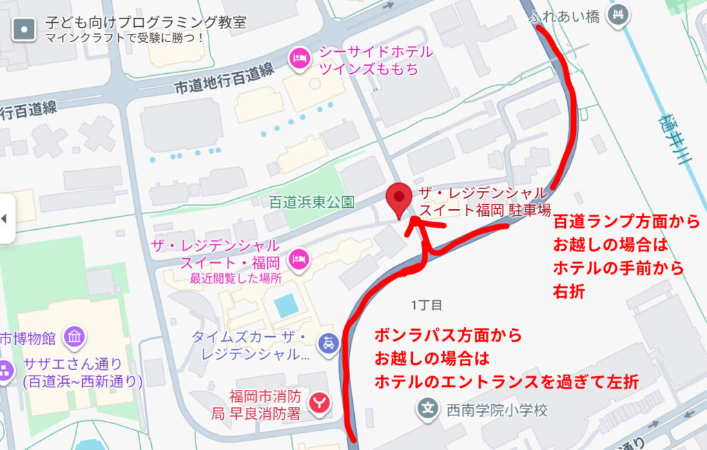 ザ・レジデンシャルスイート福岡の駐車場(少しわかりにくいので説明)