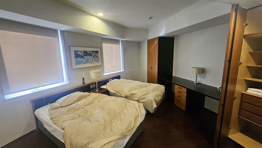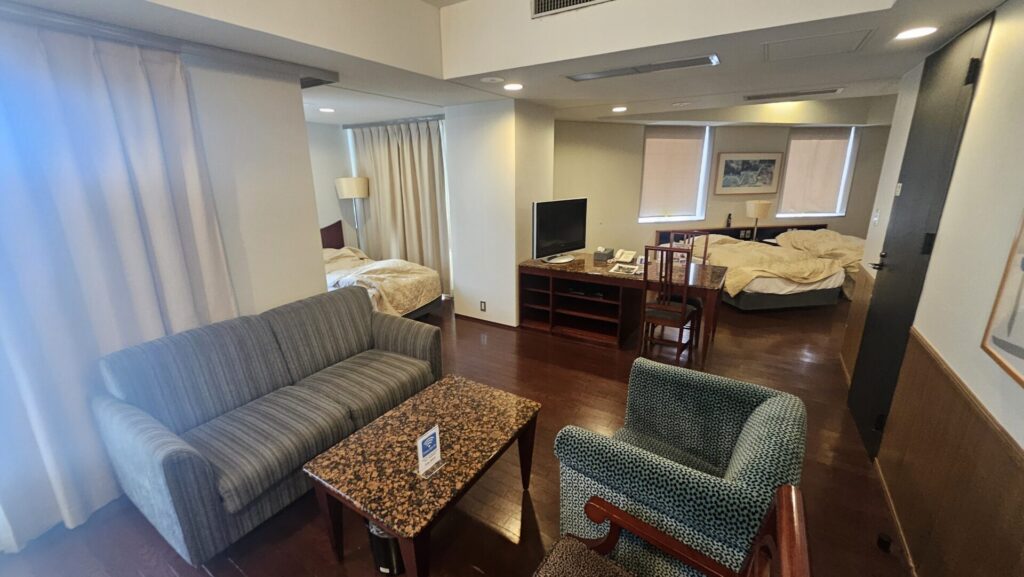 直近では、9月の祝日の前日に、妻と5歳の息子と家族3人でファミリールームに宿泊しました。(写真はチェックアウト直前に撮影したのでシーツが若干乱れてます。当然ですが、チェックイン時はきれいです)