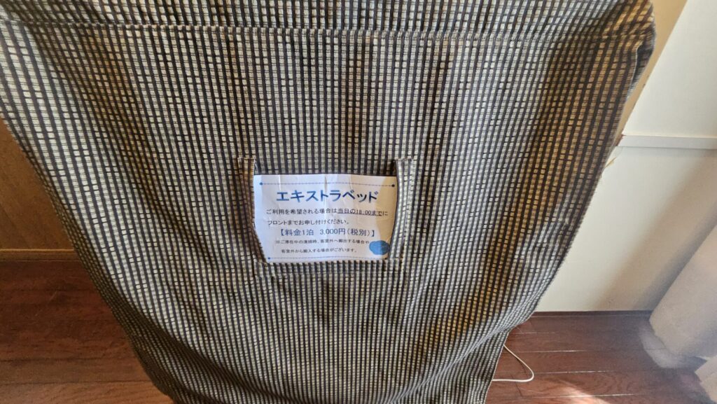 定員を超える利用の際は、エキストラベッド(簡易ベッド)も1泊3,000円で利用できるようです。